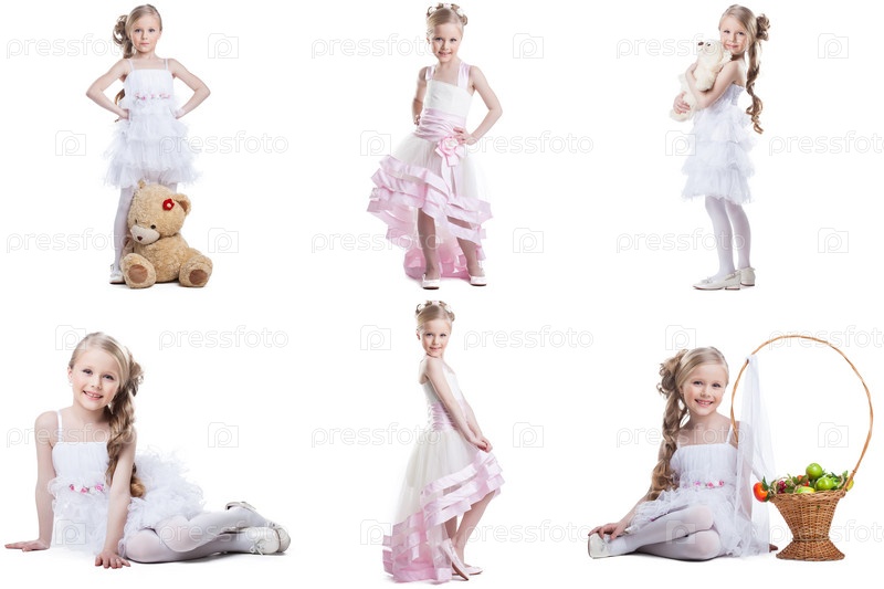 Коллаж очаровательной маленькой девочки в платьях