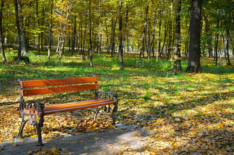 Красивый осенний парк с дорожками и скамейками