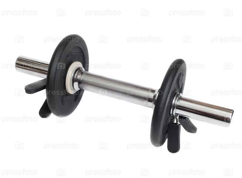Металлическая гантеля на белом фоне