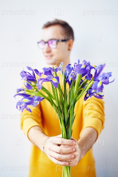 Молодой человек с красивыми весенними цветами