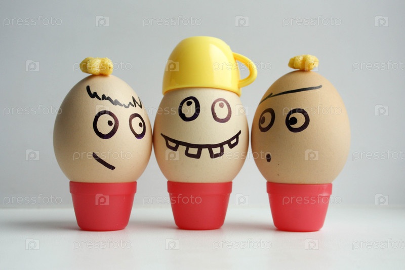 Яйца с нарисованными лицами. Концепция бизнеса