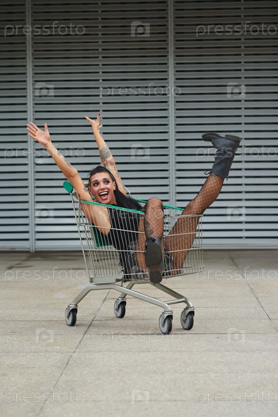 Девушка в торговой тележке