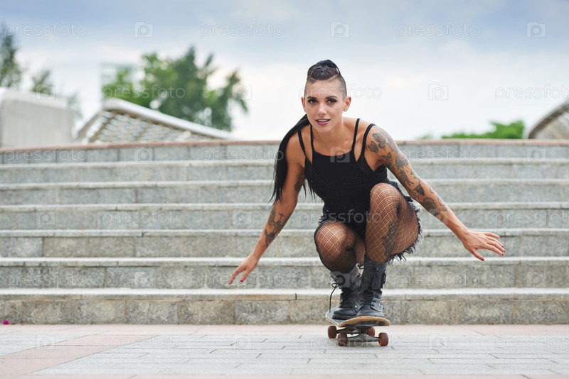 Женский скейтбордист