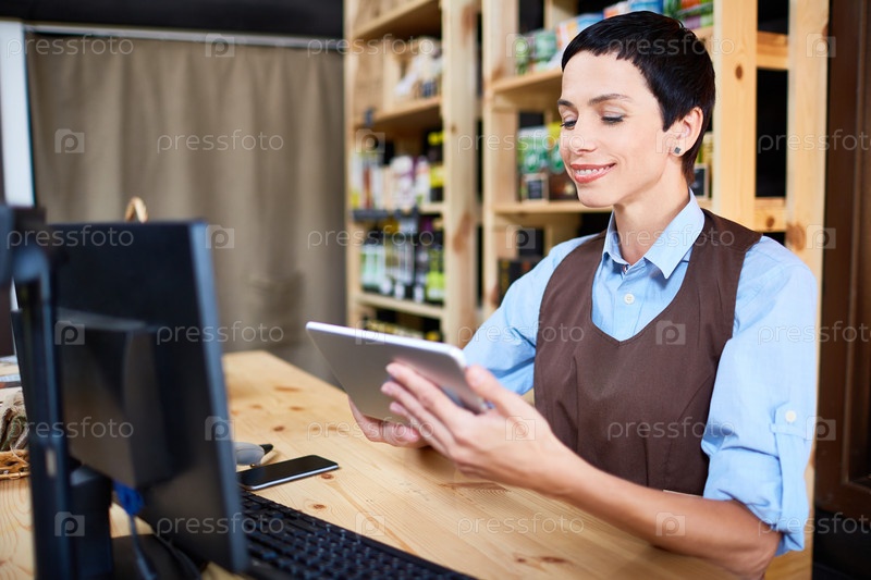 Привлекательный помощник в магазине на работе