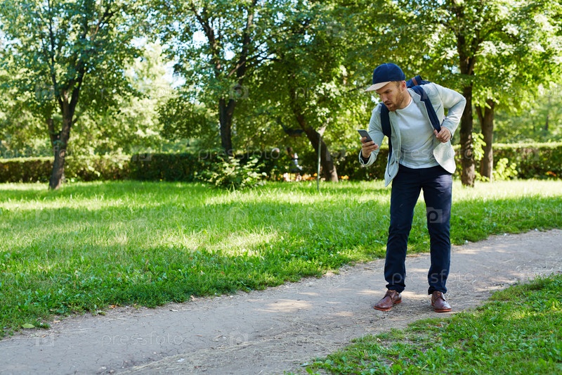 Прогулка по парку со смартфоном