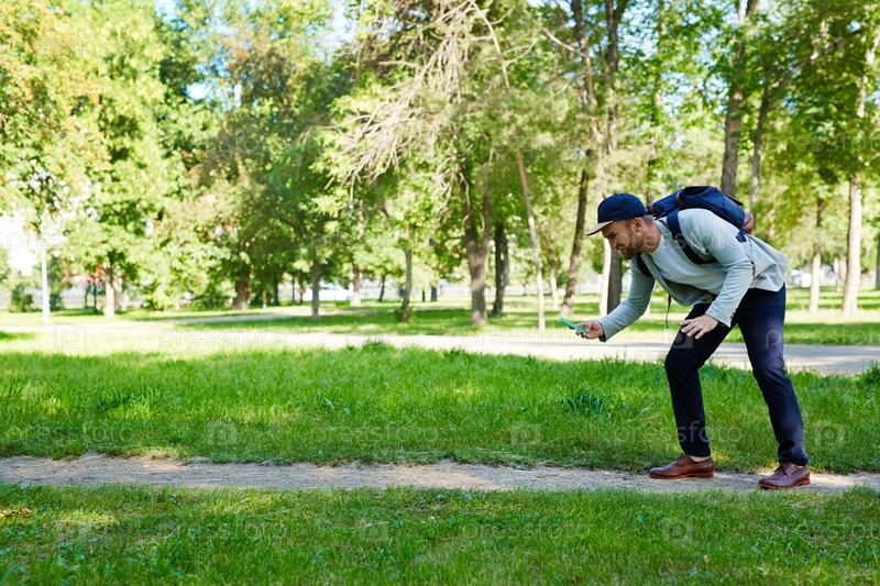 Бородатый геймер в общественном парке