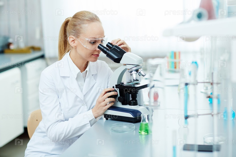Красивая женщина-исследователь, работающая в лаборатории