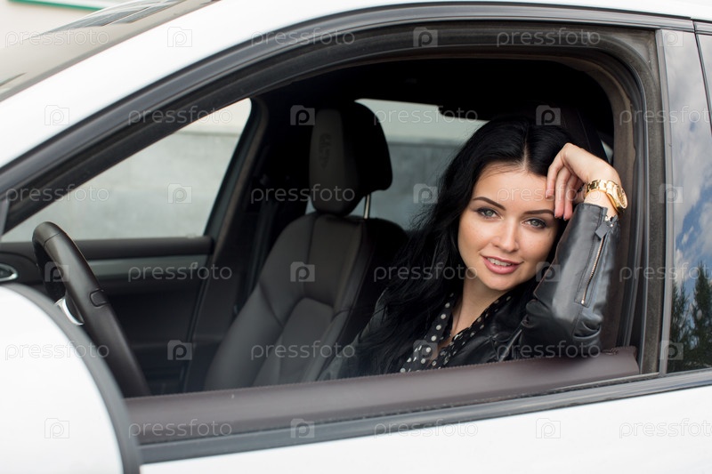 Молодая женщина, сидящая внутри автомобиля