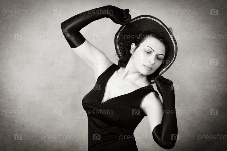 Танцующая женщина в шляпе и вечернем платье