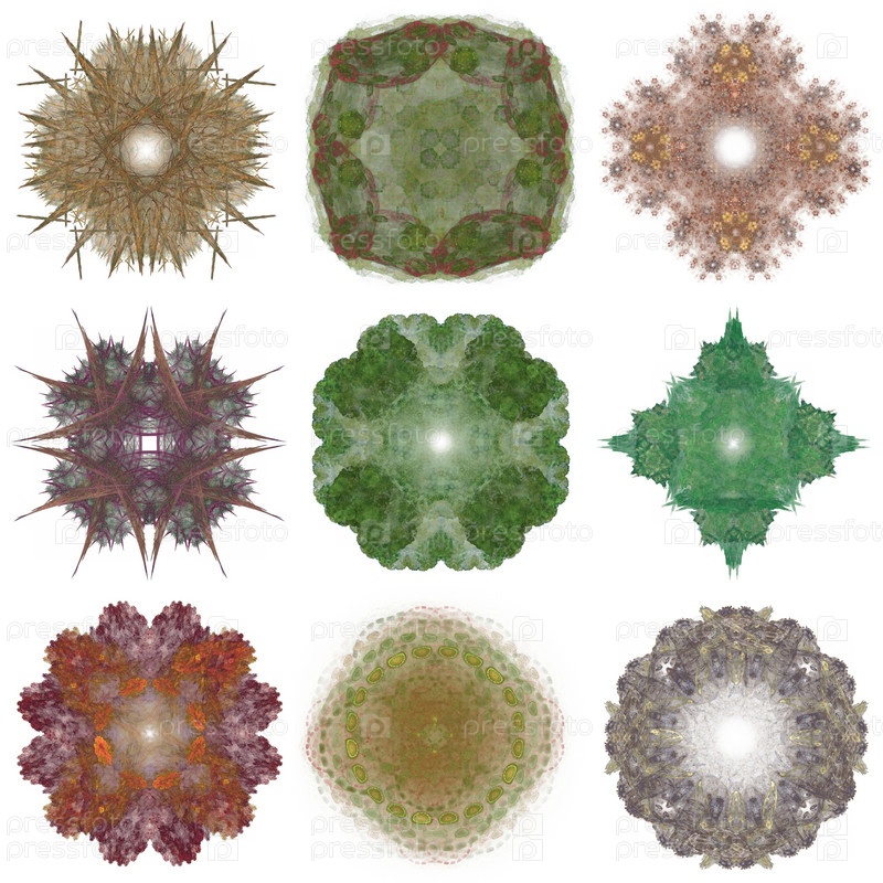 Набор различных цветных узоров на абстрактном фрактале