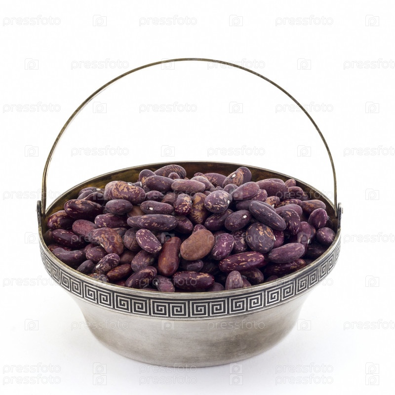 Сырая красная фасоль в серебряной чаше