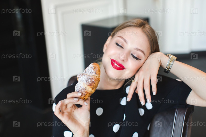 Женщина нюхает свежеиспеченный круассан