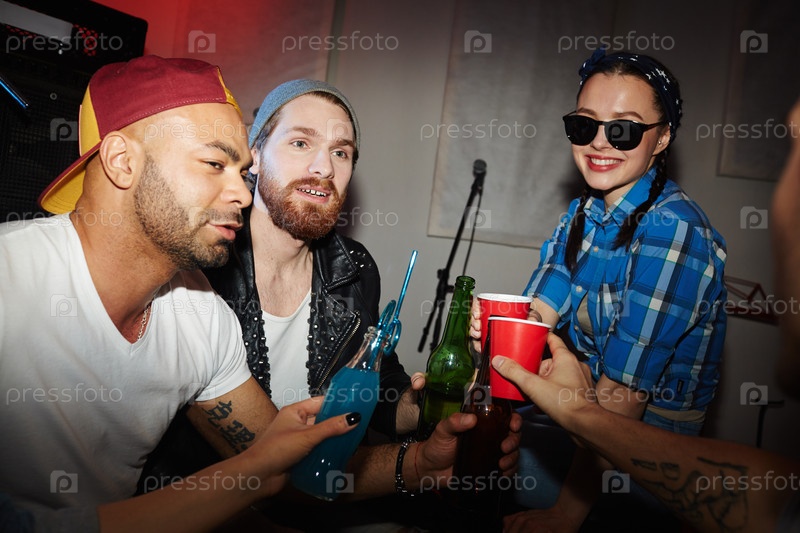 Модные люди пьют пиво на вечеринке в ночном клубе