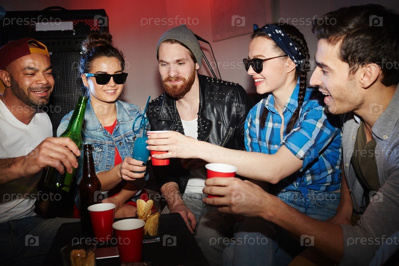 Модные молодые люди веселятся на вечеринке