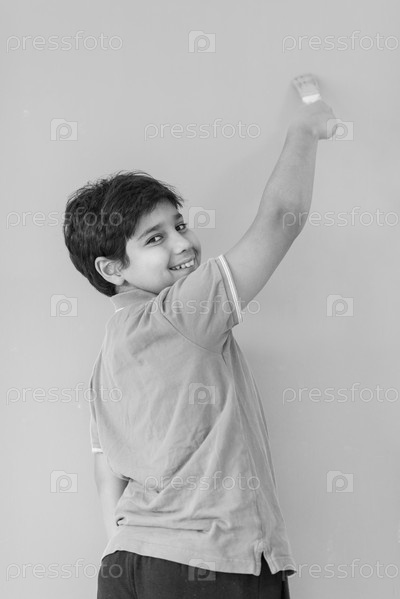 Мальчик красит стену