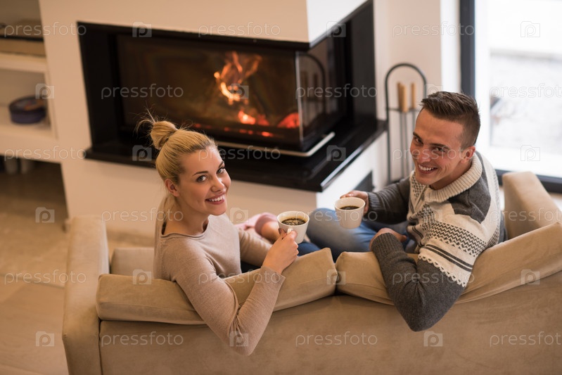 Молодая пара у камина