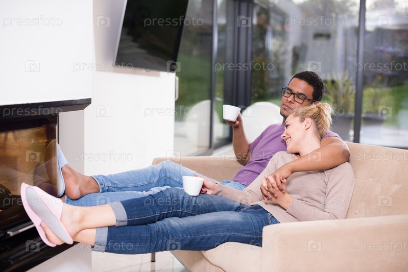 Счастливая пара у камина
