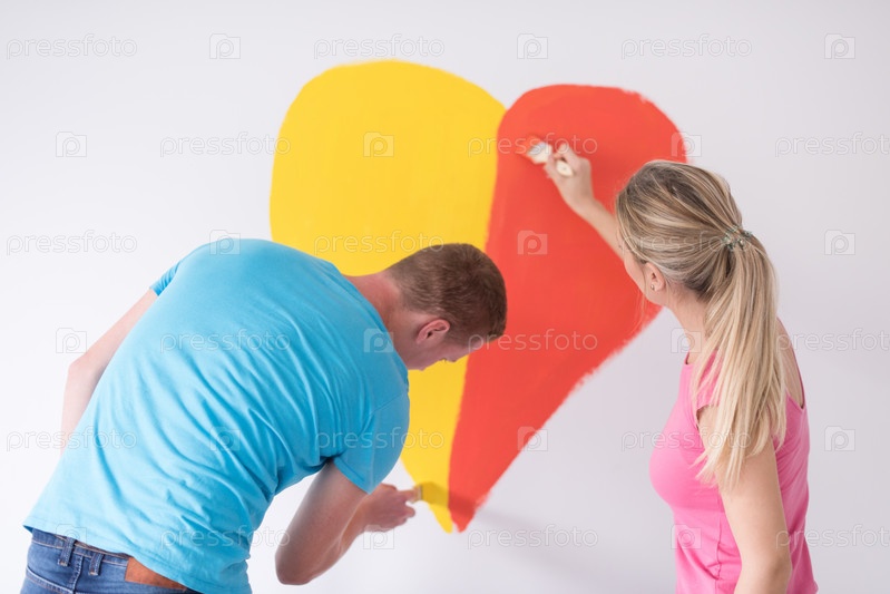 Пара рисует сердце на стене