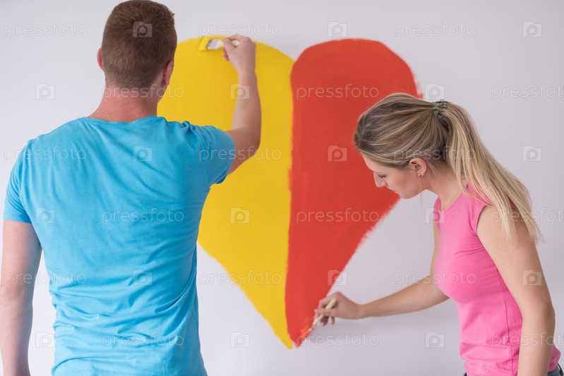 Влюбленные рисуют сердце на стене