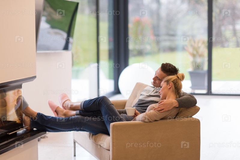 Счастливая пара у камина