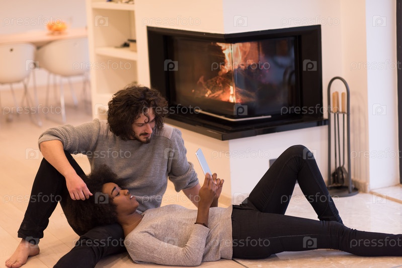 Счастливая пара у камина