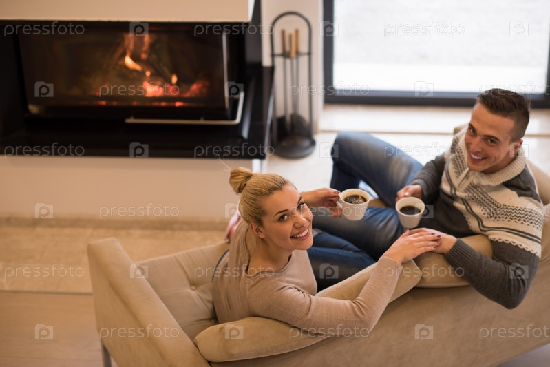 Счастливая пара у камина