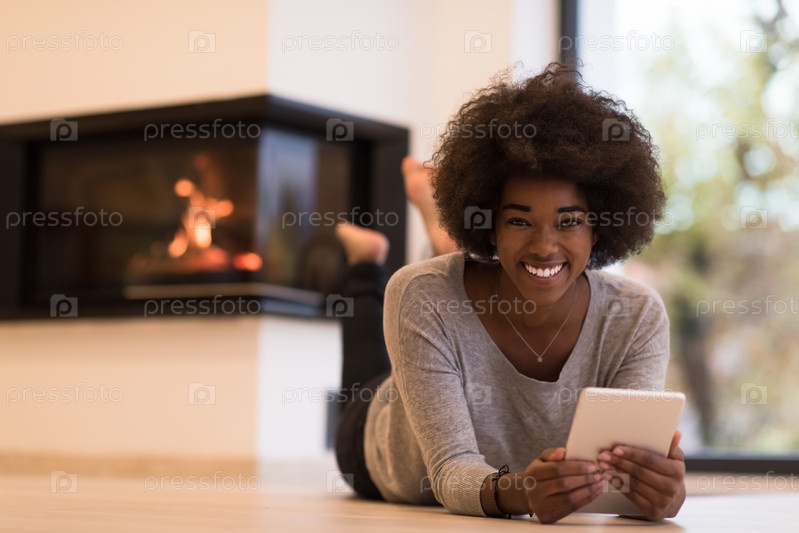 Счастливая женщина с планшетом