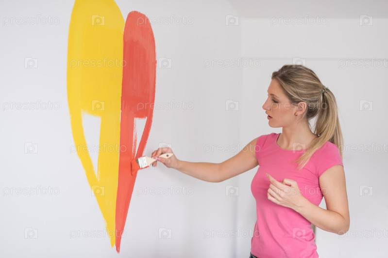 Девушка рисует сердце на стене