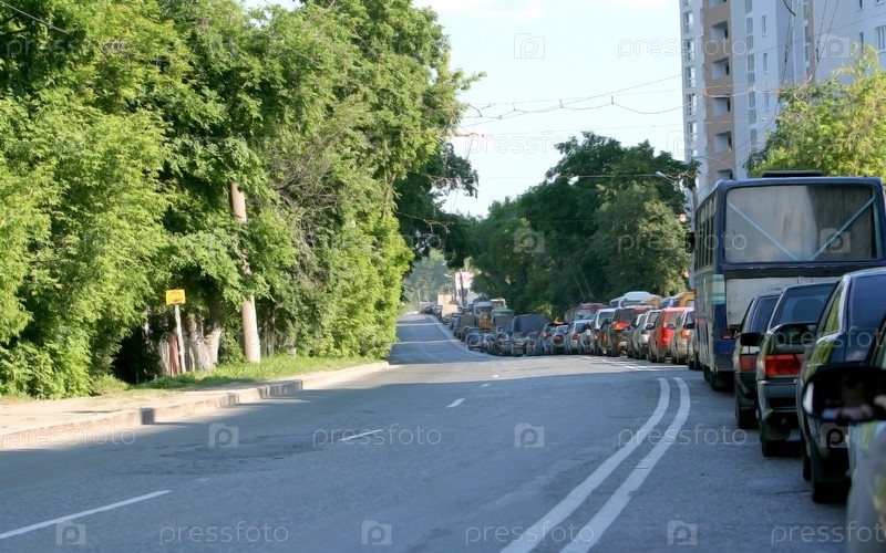 Длинная пробка на городской улице