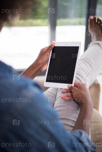 Женщина дома с цифровым планшетом