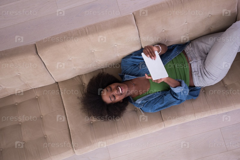 Женщина дома с цифровым планшетом