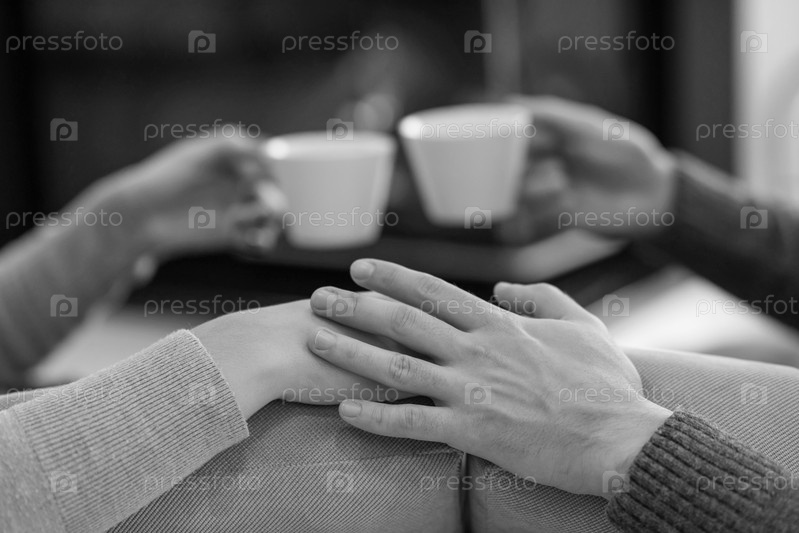 Молодая пара перед камином