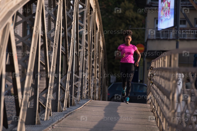 Женщина, бегущая через мост