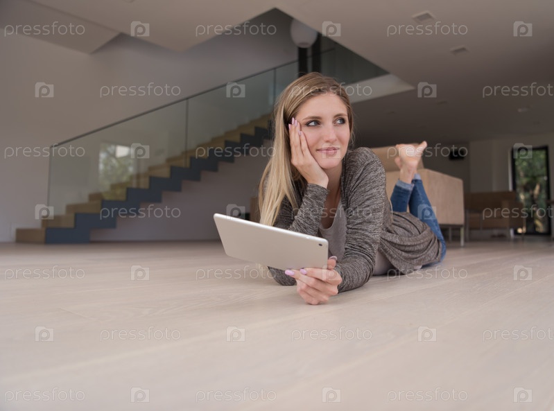 Женщина дома с цифровым планшетом