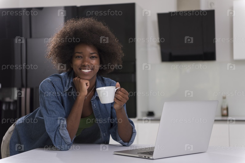 Черная женщина в современной кухне
