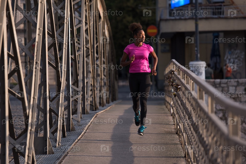 Женщина, бегущая через мост