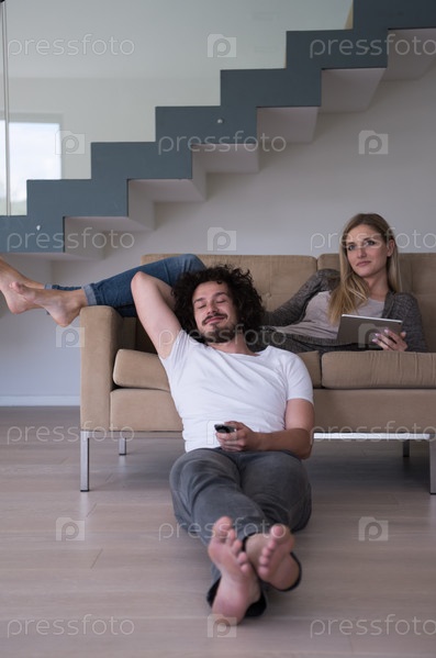 Молодая пара расслабляется в гостиной