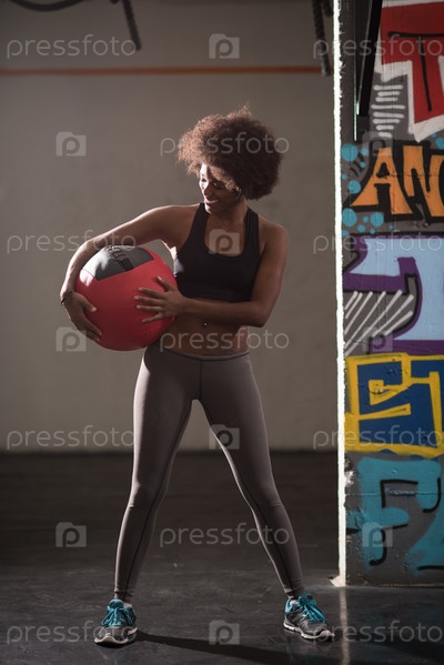 Черная женщина с мячом для кроссфита
