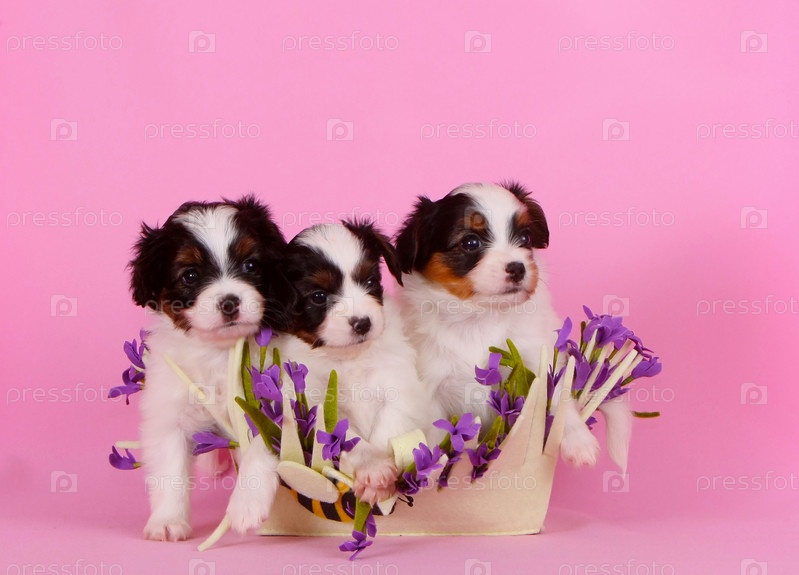 Три маленьких белых щенка породы фален