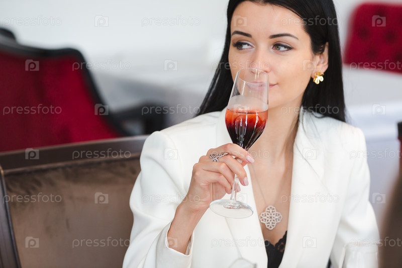 Стильная женщина, пьющая коктейль