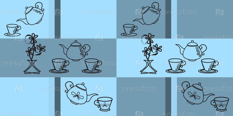 Бесшовный узор с чайными горшками и чашками чая