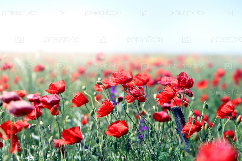Поле красивых красных маков