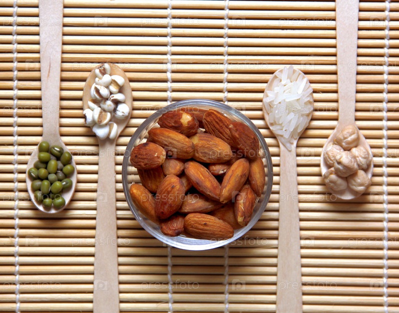 Различные виды зерновых и орехи