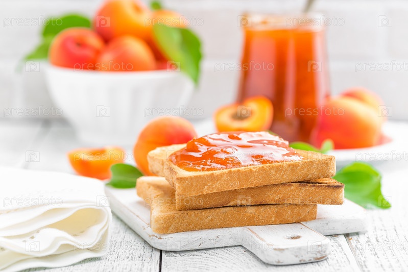 Тосты хлеба с абрикосовым джемом и свежими фруктами