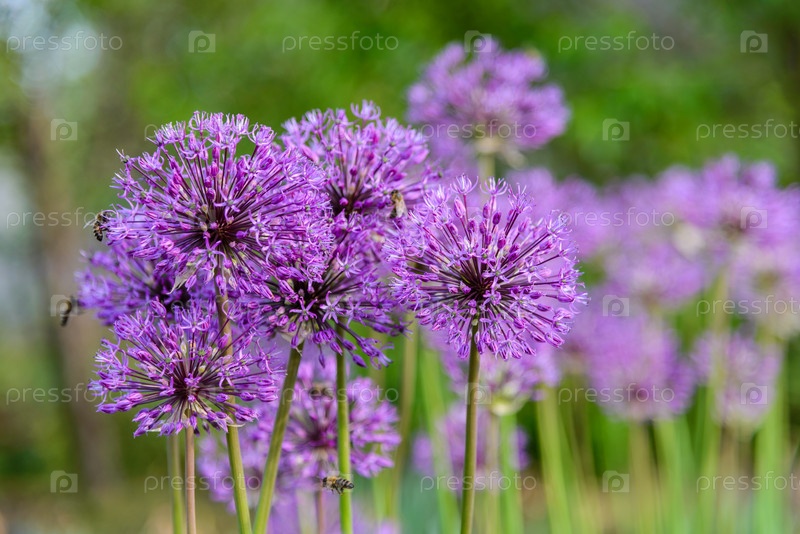 Большие зонтики цветов дикого лука