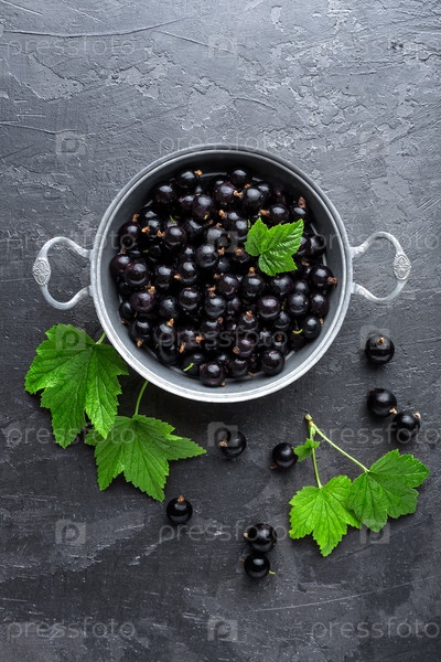 Ягоды черной смородины с листьями