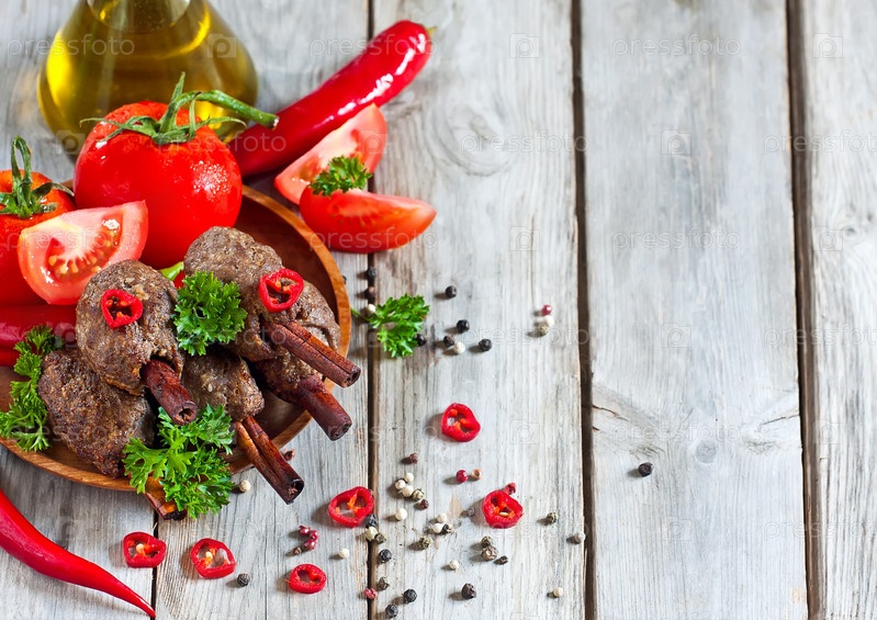 Кебаб на фоне коричных палочек
