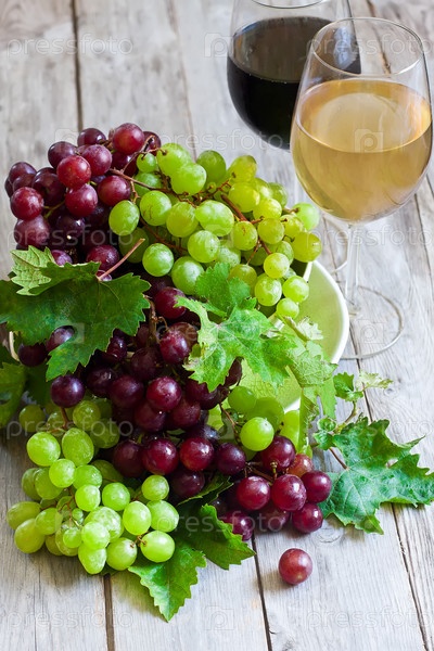 Зеленый и красный виноград и вино