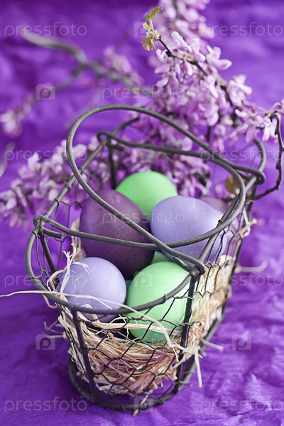 Пасхальные яйца в корзине