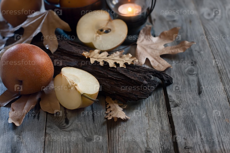 Азиатские груши и осенние листья